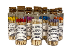 These adorable bottles hold 25 matches and come in a variety of colors. Each bottle has a striker on the bottom of the container. Just select the number of bottles needed and choose your favorite color from the drop down menu below!