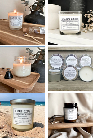 Qty Gift Boxed Votive Candles - (3 oz) - $12.95 each - Qty Gift Boxed Square Candle (12 oz) - $32.95 each - Qty Mason Jars - (8 oz) - $13.95 each - Qty Candle Tins (8 oz) - $13.95 each Qty Amber Jar (9 oz) $14.95 each Qty Clear Tumblers - (11 oz) - $23.95 each