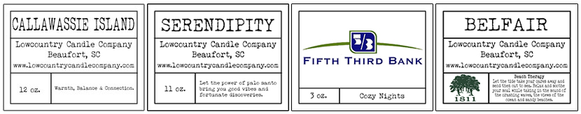 Wholesale Are you interested in carrying our candle line, or want your own line with custom labels with your business information and logo? Or maybe you want your own Neighborhood Candle Line. This line is perfect for your town, the surrounding communities and special places of interest to your particular area. It's quick and easy to create your own line and your local clientele will love it. Bulk Orders: We fill large bulk orders for your company. Whether it's for your Gift Basket Business, Swag Bags/Promotional Needs, Realtors or Corporate Gifts, we'll be happy to assist you. Minimum Order is $180.00 Contact us today: info@lowcountrycandlecompany.com